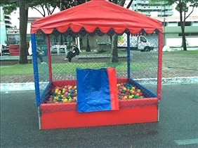 Sem esquecer da indispensável piscina de bolinhas, que no lugar de água, tem milhares de bolinhas.